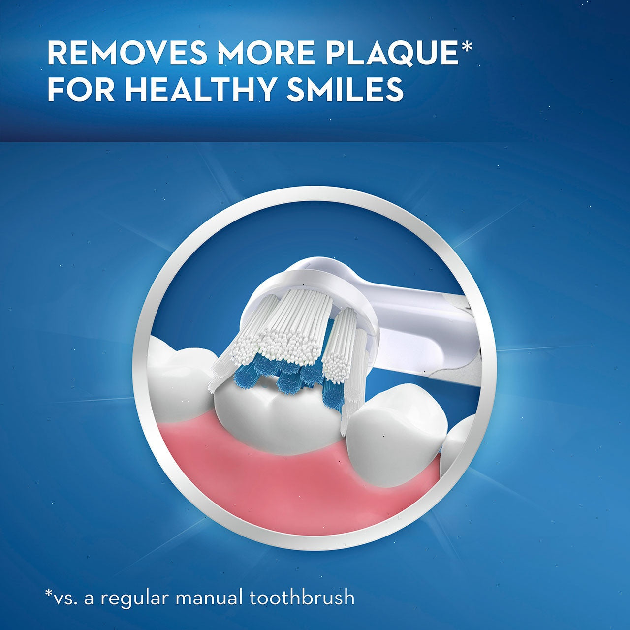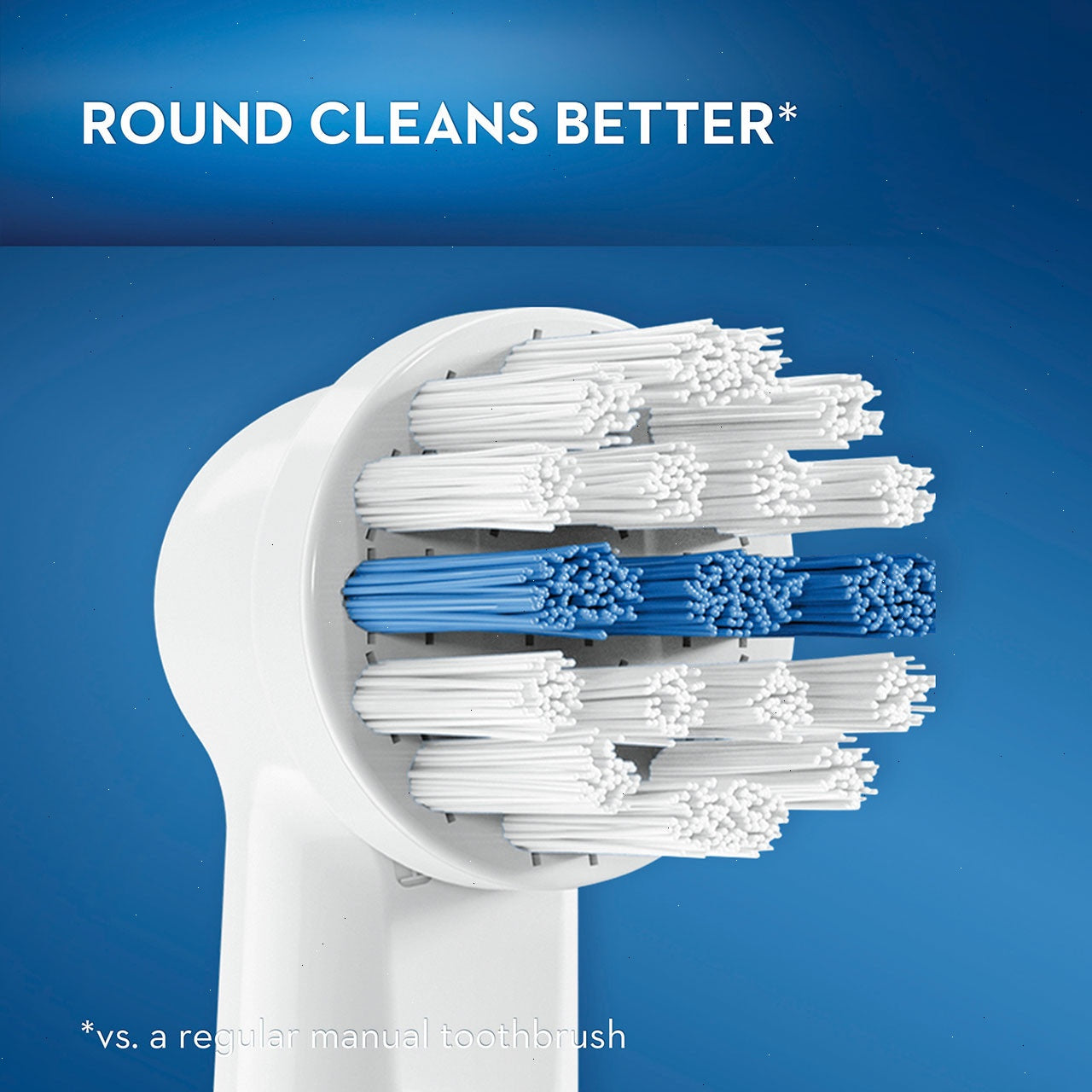 - Blue indicator bristles signal time to change brush head
