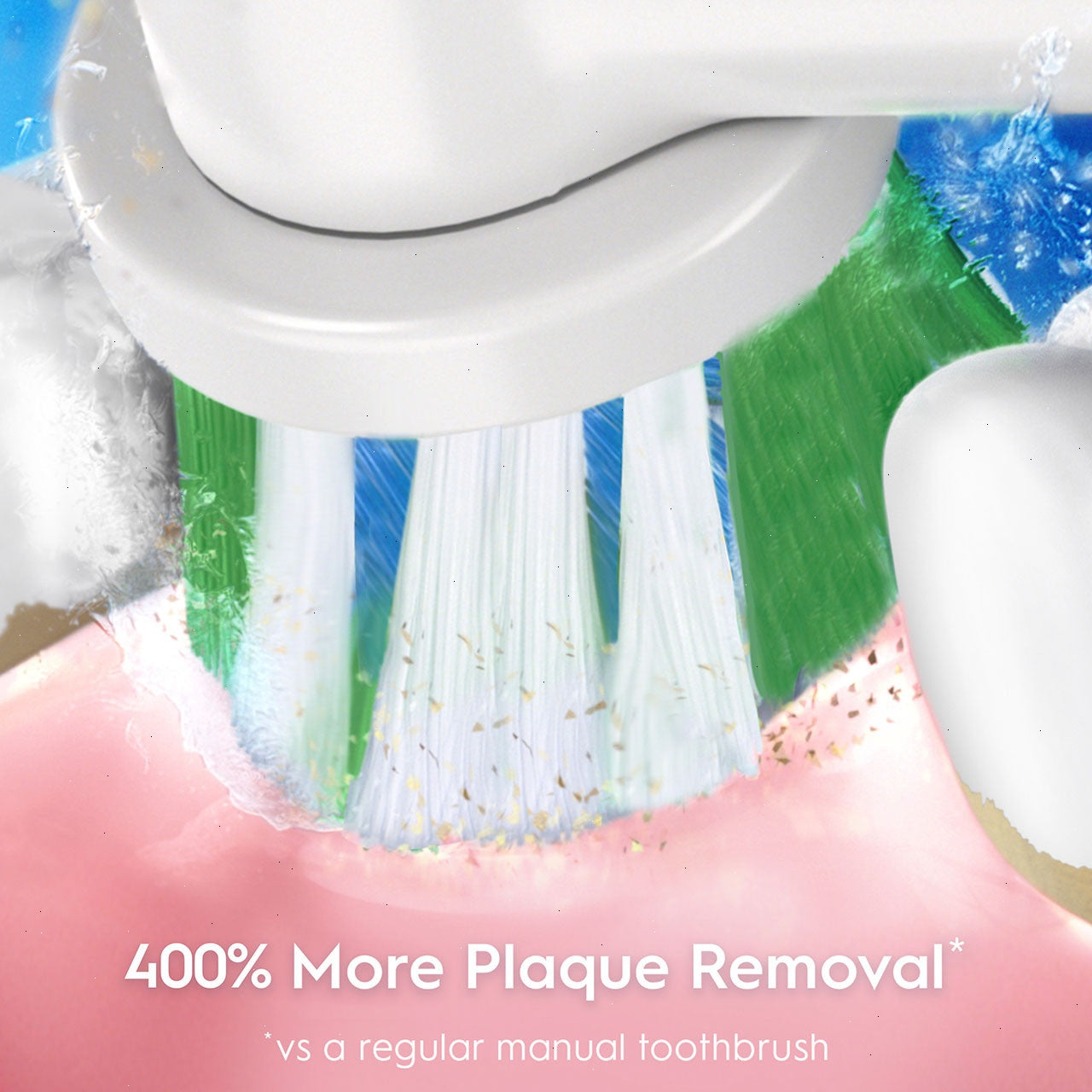 - Removes 400% more plaque along the gum line vs. a regular manual brush