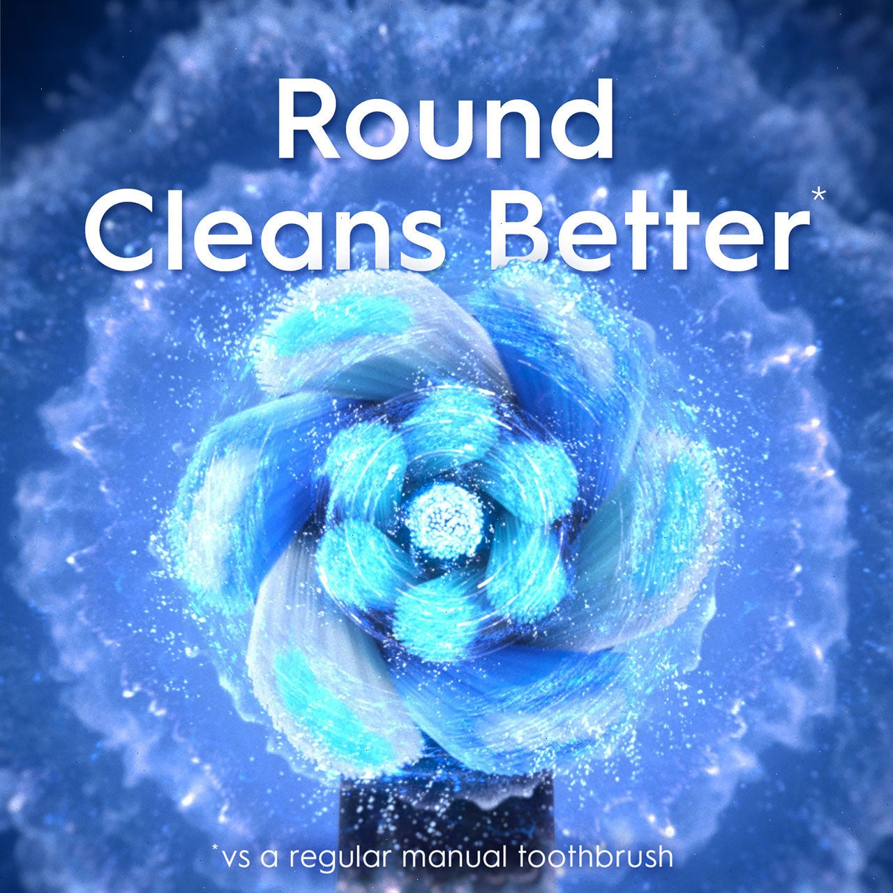 Round Cleans Better. The dentist-inspired round brush head reaches deep between teeth to remove 100% more plaque*.