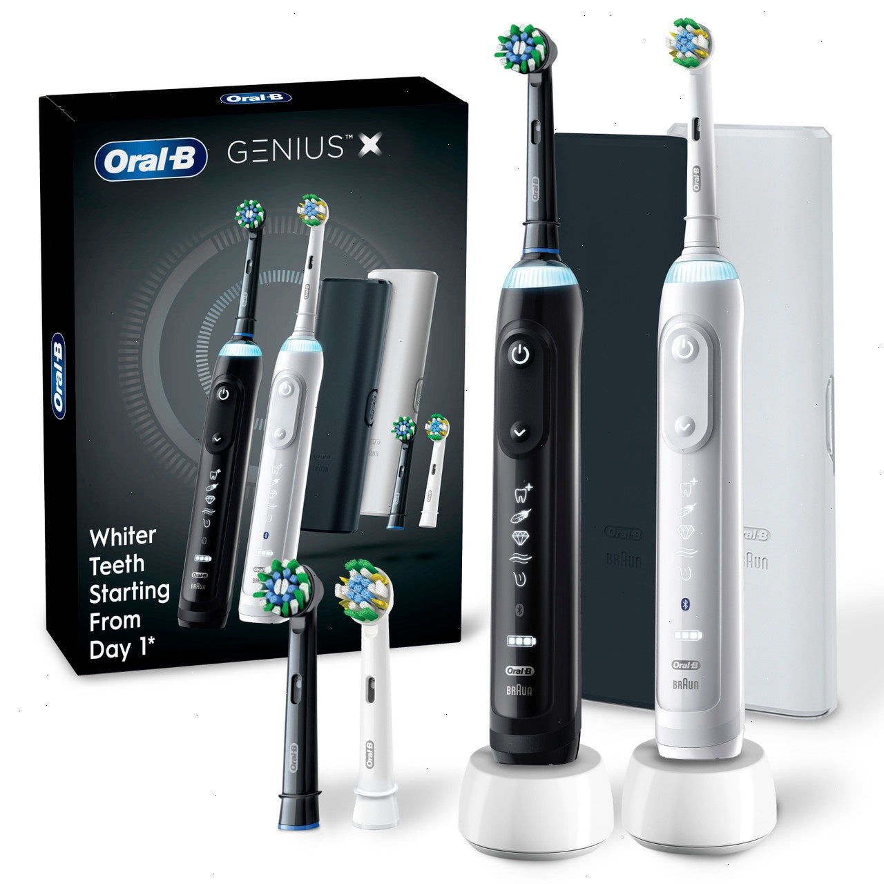Oral-B Genius X Rechargeable Electric Toothbrush Twin Pack, Black and White
