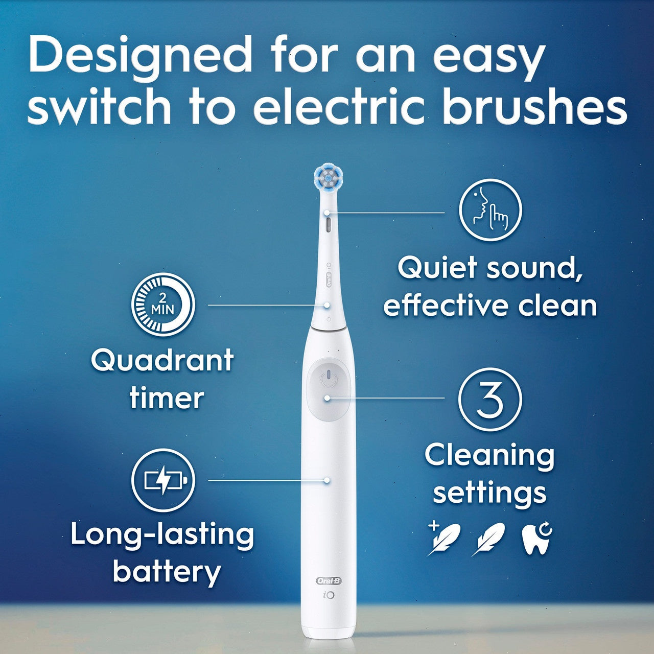 Fits all Oral-B iO replacement brush heads: Ultimate Clean, Gentle Care, Whitening Care, Targeted Clean