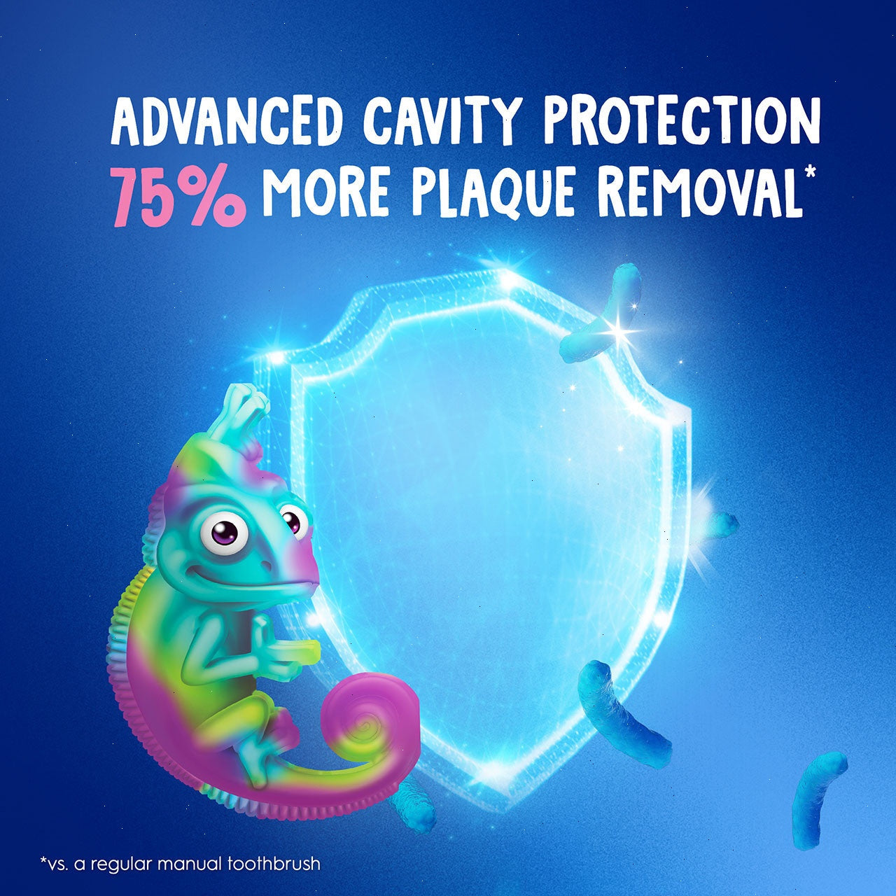 Make healthy habits fun at an early age with Oral-B Kid's Electric Rechargeable Toothbrush with Charger, the #1 dentist-recommended toothbrush for kids. Oral-B rechargeable toothbrush helps them fight cavities by removing 75% more plaque. The Oral-B Chameleon’s bristles will indicate when it's time for a new brush head as it changes color from blue to white, so it doesn't lose its effectiveness and continues to provide your child with the protection they need. Oral-B Chameleon Toothbrush has a sensitive mode that helps them clean their small teeth while still being gentle on them. The Oral-B Chameleon waterproof toothbrush comes with a coaching timer that will make them achieve the 2-minute dentist-recommended brushing time.