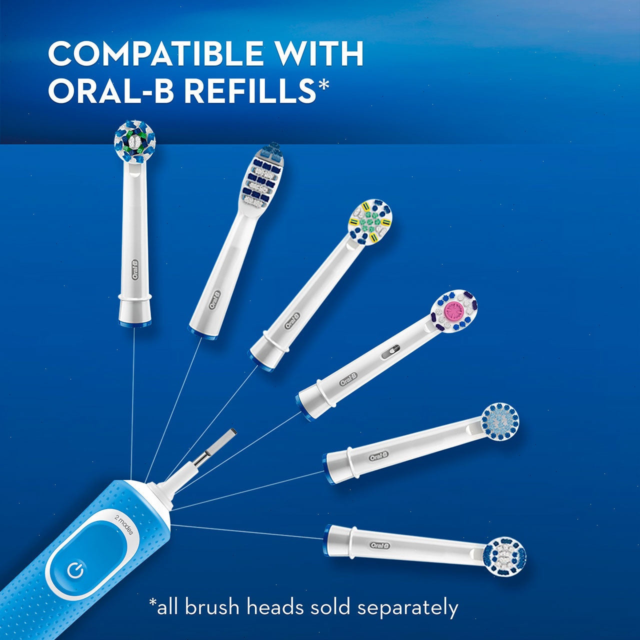 - Blue indicator bristles signal time to change brush head